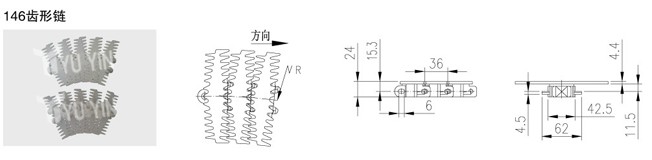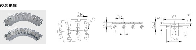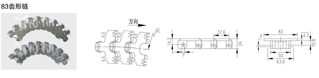 63/83齒形鏈板半徑為R150,103/146齒形鏈/齒形鏈板半徑為R250