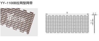 節(jié)距12.7mm,厚度6.3mm,開孔率40% 網帶材質:聚甲醛(POM) 網帶負載及溫度: POM≈2000N/M,4~80℃ 網帶重量:POM=4.5kg/m2 反向彎曲半徑:25mm |